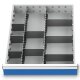 Metalleinteilung Set 10-teilig, R 18-24, Schubladennutzmaß 450 x 600 mm, Blendenhöhen 150 / 175 mm Maße in mm (BxTxH): 450 x 600 x 150